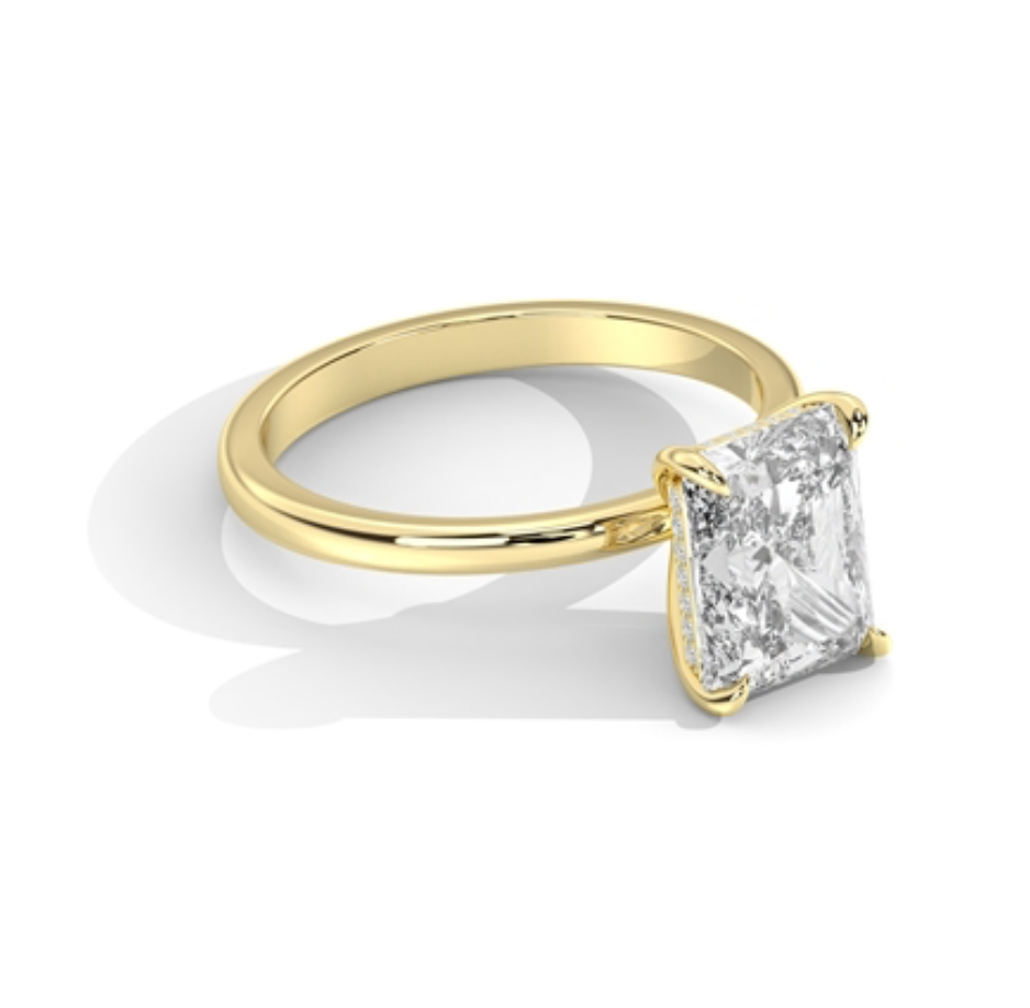 Custom Brooke setting with 4.09 ct Radiant F VVS2 ring